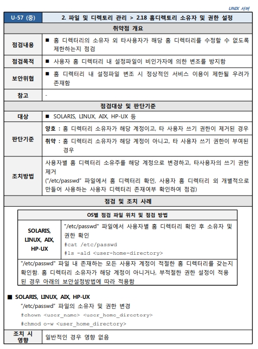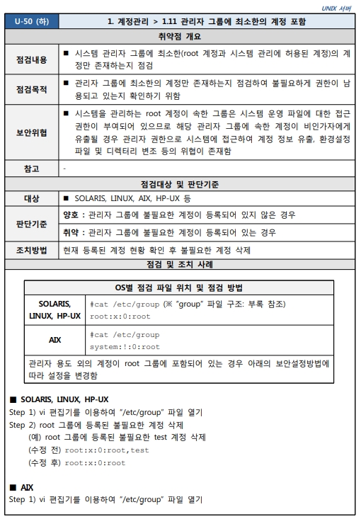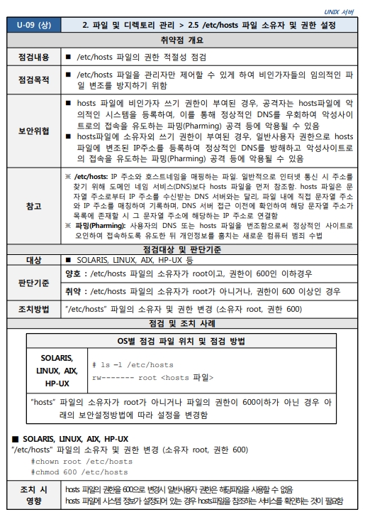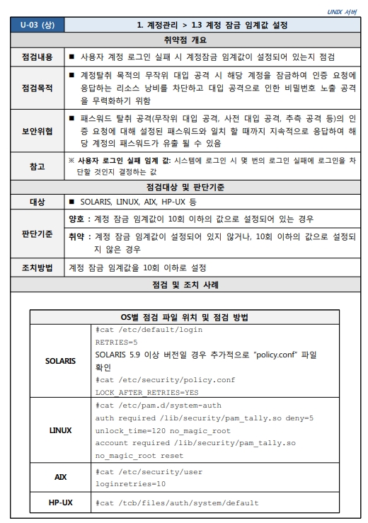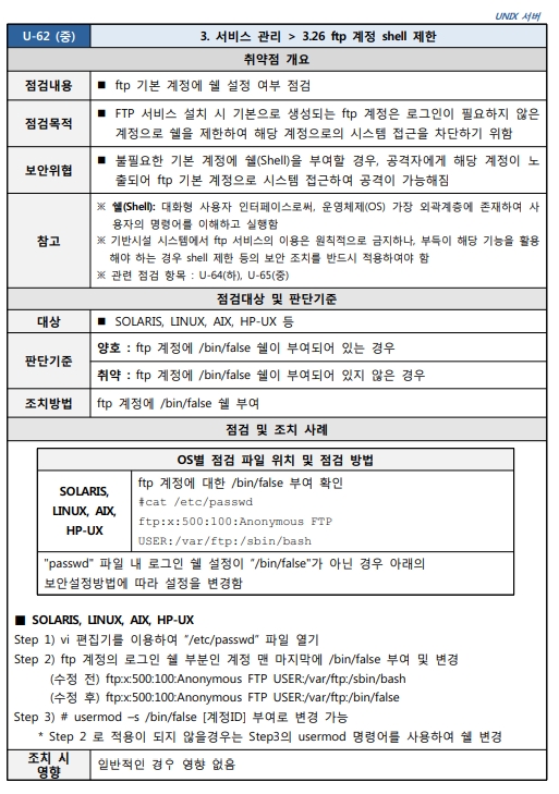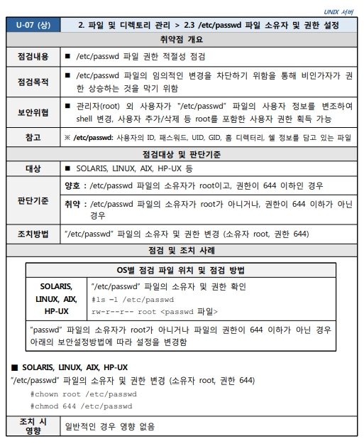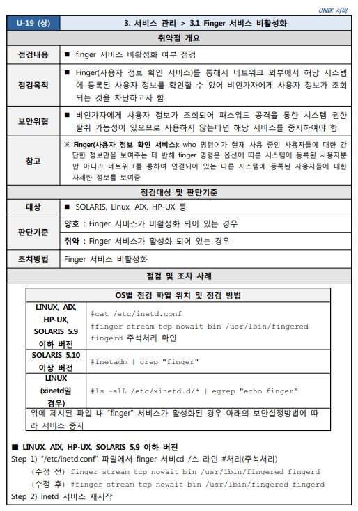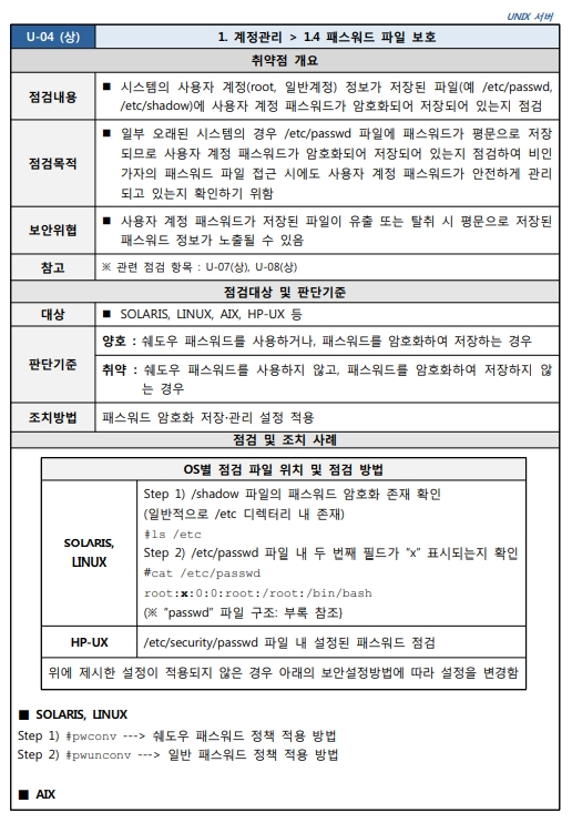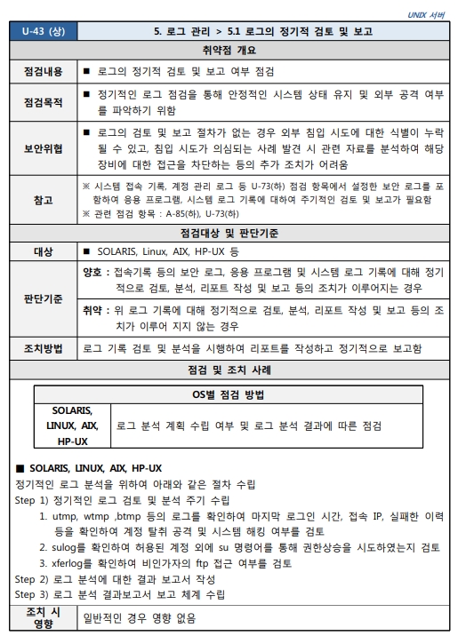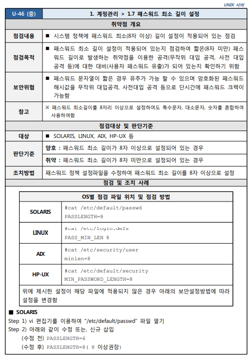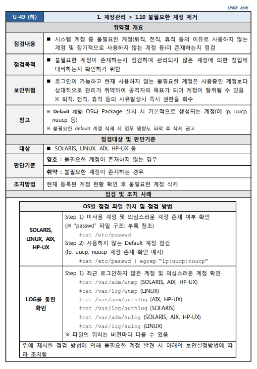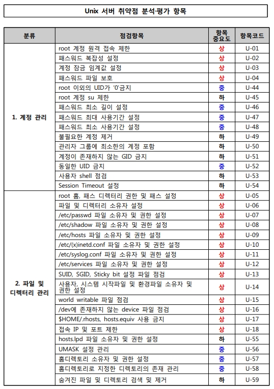 Unix 시스템 취약점 진단 분석 평가 방법
