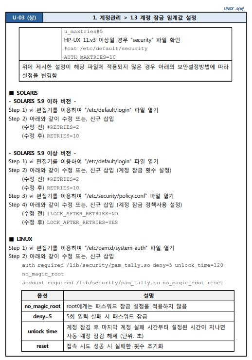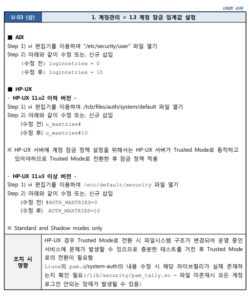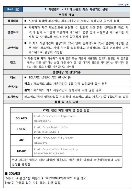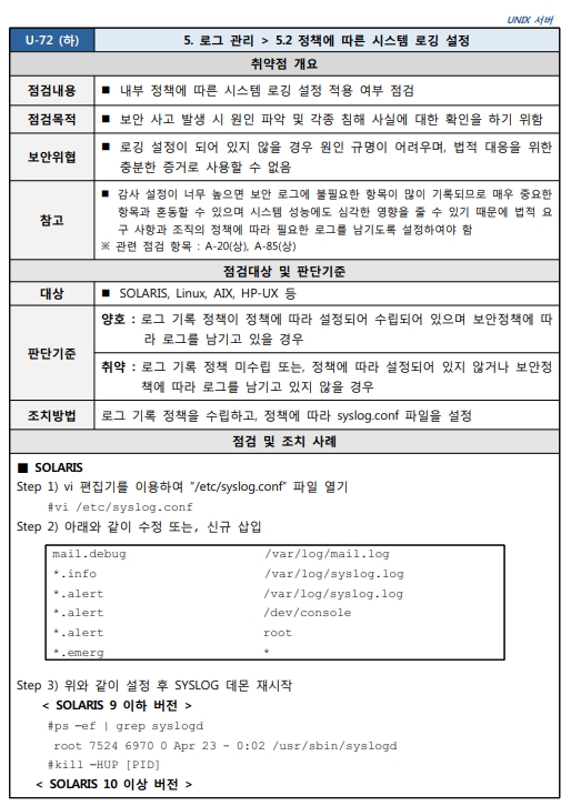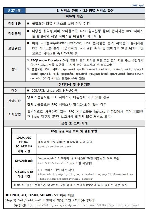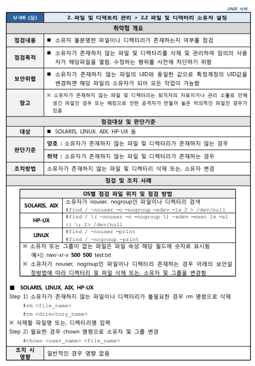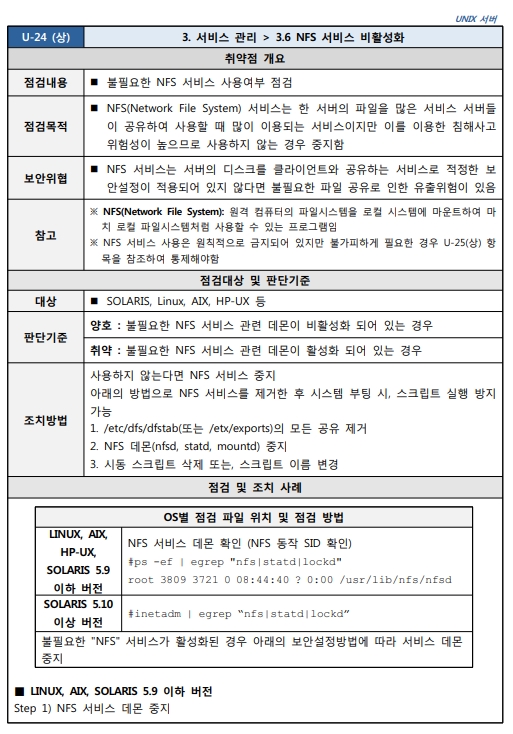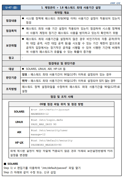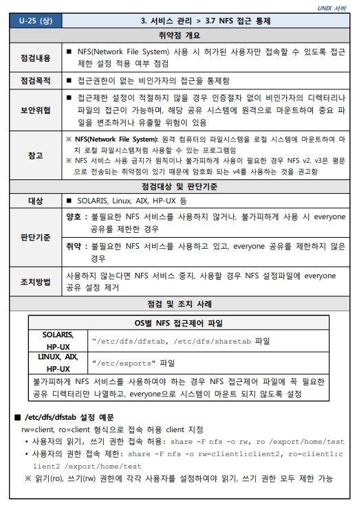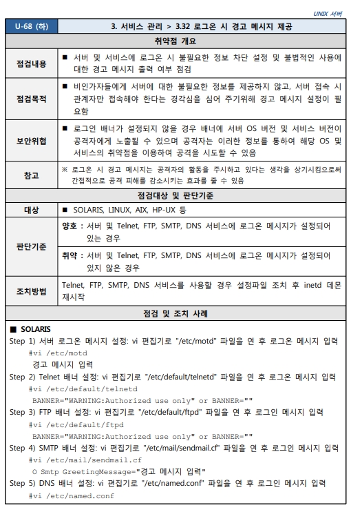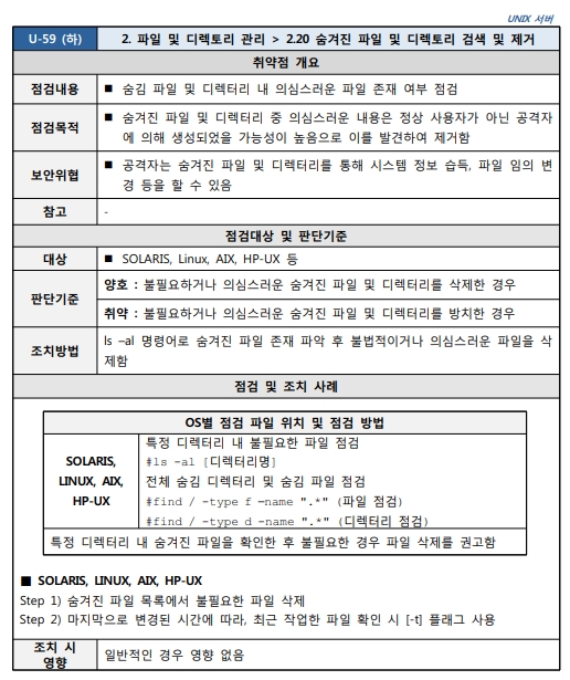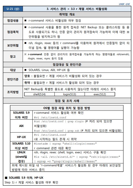 Unix 시스템 취약점 진단 분석 평가 방법
