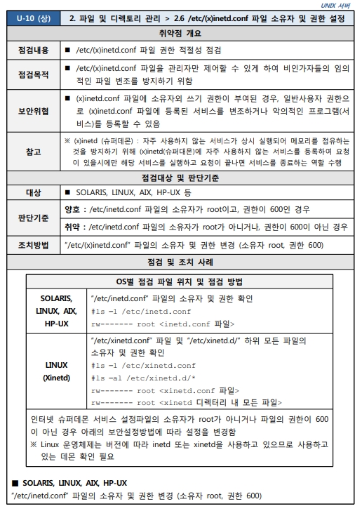 2.6 /etc/(x)inetd.conf 파일 소유자 및 권한 설정