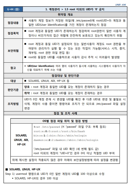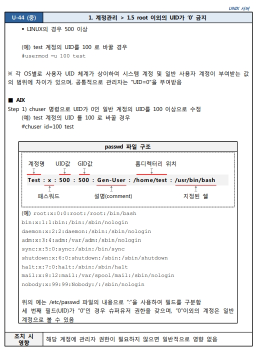 1.5 root 이외의 UID 가 '0' 금지