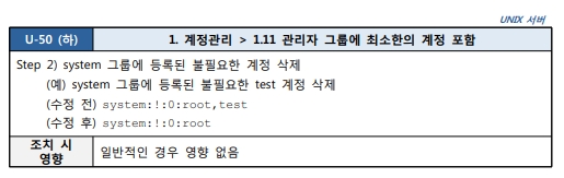 1.11 관리자 그룹에 최소한의 계정 포함