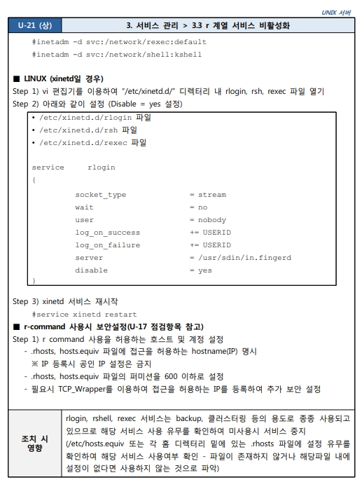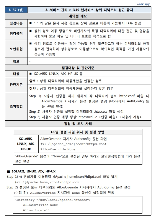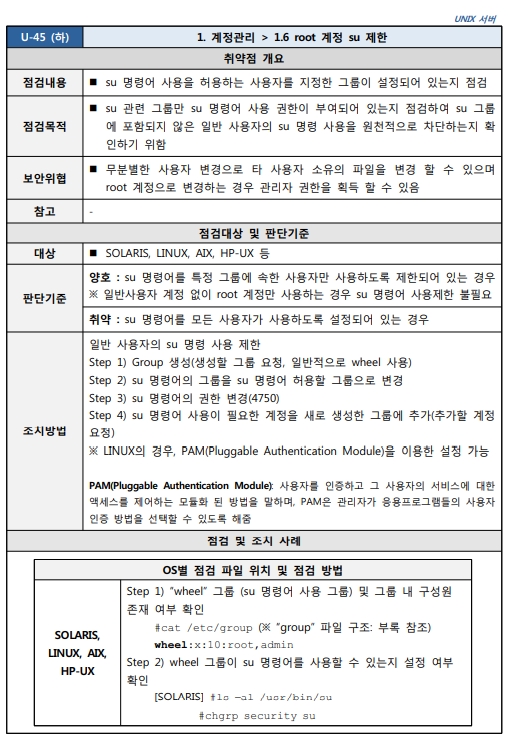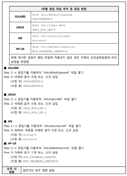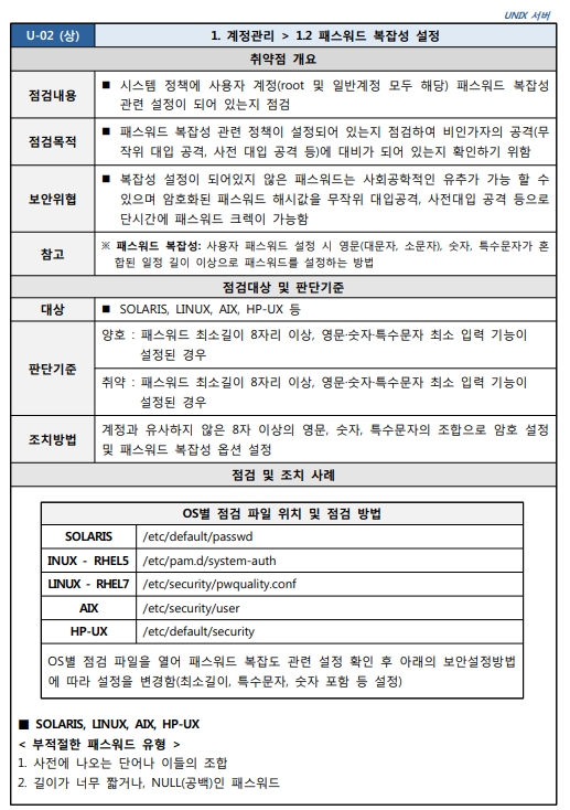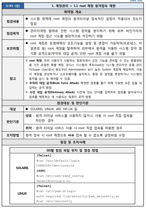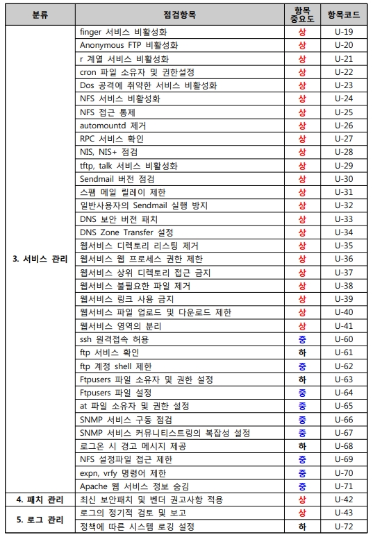 출처 : [2021.03] 과학기술정보통신부, 한국인터넷진흥원 발간 내용 "주요정보통신기반시설 기술적 취약점 분석ㆍ평가 방법 상세가이드"