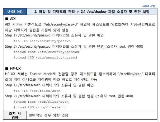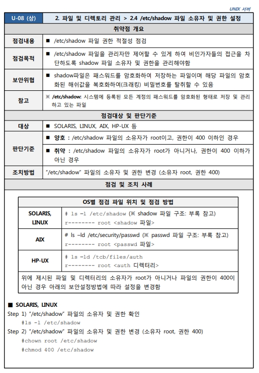 2.4 /etc/shadow 파일 소유자 및 권한 설정