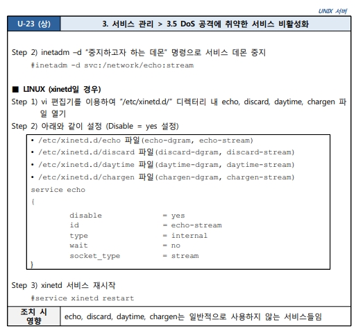 3.5 DoS 공격에 취약한 서비스 비활성화