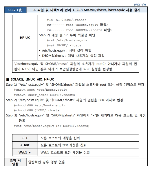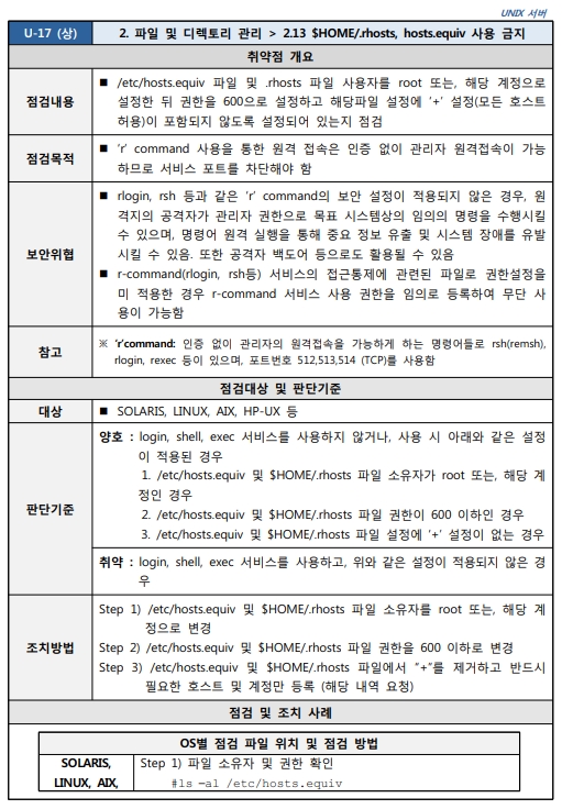 2.13 $HOME/.rhosts, hosts.equiv 사용 금지