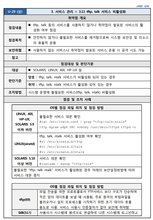 3.11 tftp, talk 서비스 비활성화
