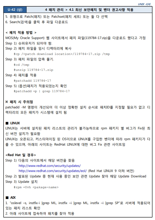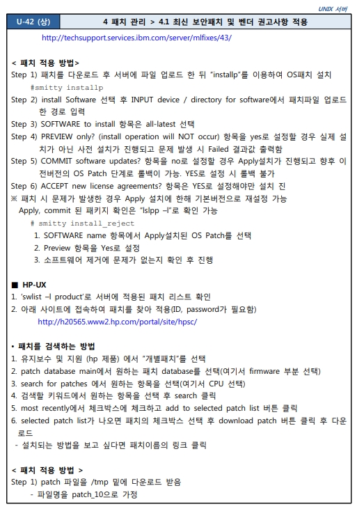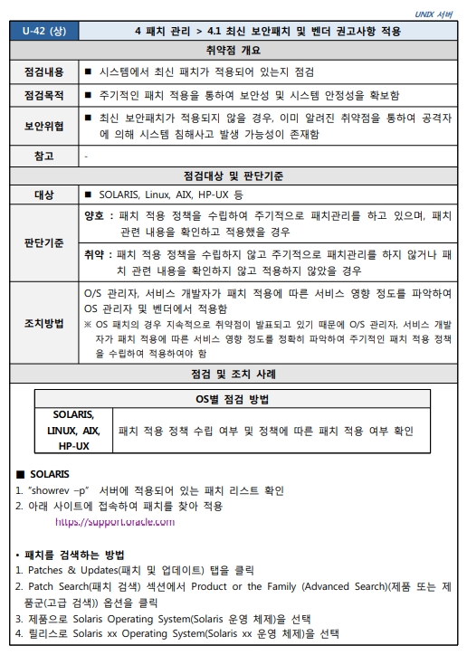 4.1 최신 보안패치 및 벤더 권고사항 적용