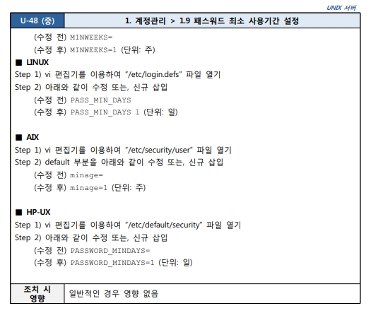 1.9 패스워드 최소 사용기간 설정