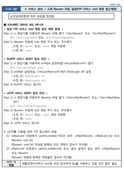 3.28 ftpusers 파일 설정(FTP 서비스 root 계정 접근제한)