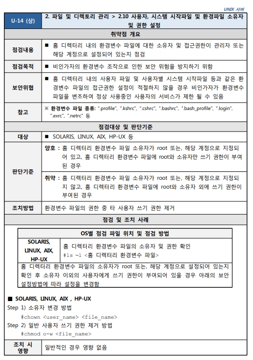 2.10 사용자, 시스템 시작파일 및 환경파일 소유자 및 권한 설정