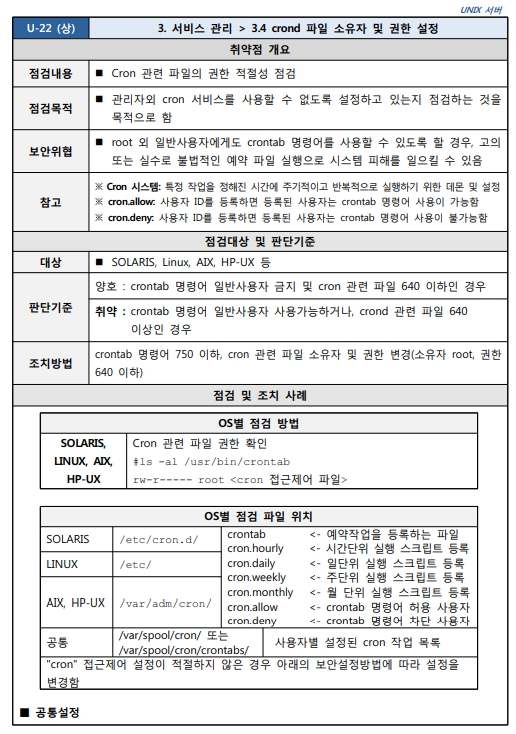 3.4 crond 파일 소유자 및 권한 설정