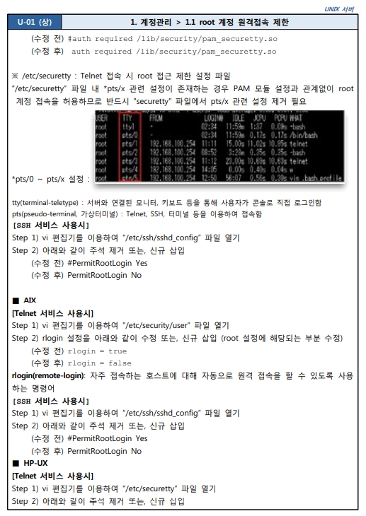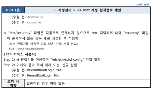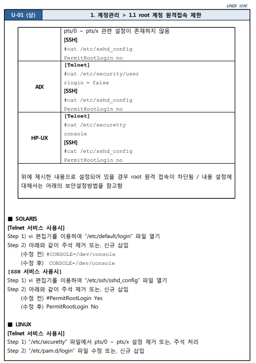 1.1 root 계정 원격접속 제한