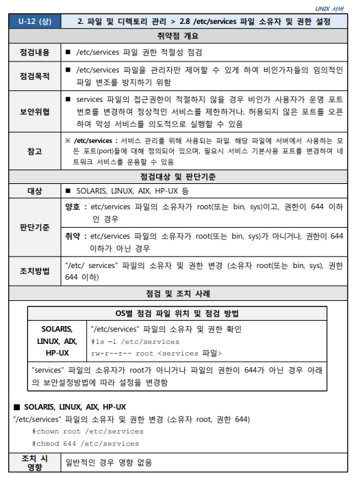 2.8 /etc/services 파일 소유자 및 권한 설정