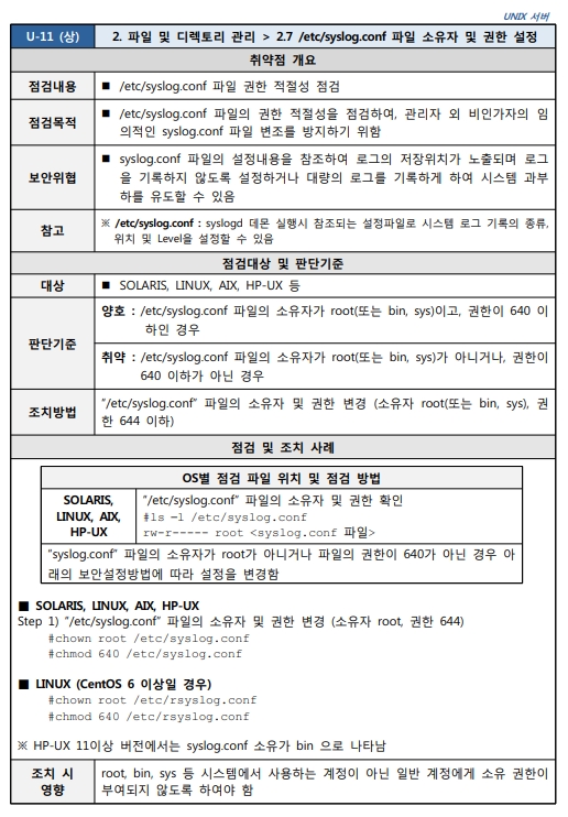 2.7 /etc/syslog.conf 파일 소유자 및 권한 설정