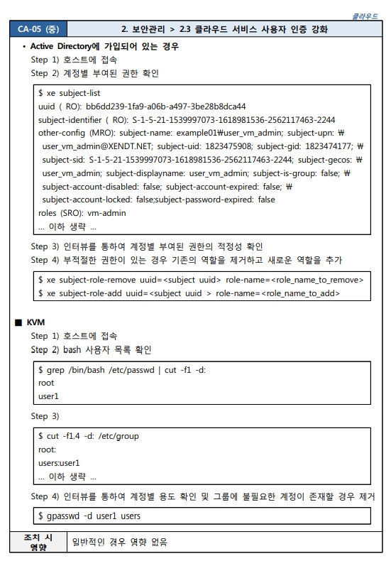 출처 : [2021.03] 과학기술정보통신부, 한국인터넷진흥원 발간 내용 "주요정보통신기반시설 기술적 취약점 분석ㆍ평가 방법 상세가이드"