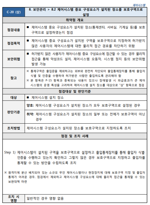 8.2 제어시스템 중요 구성요소가 설치된 장소를 보호구역으로 설정