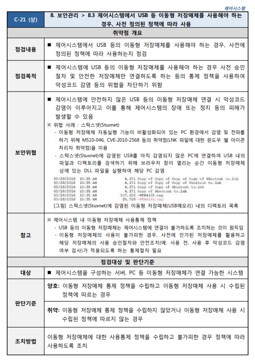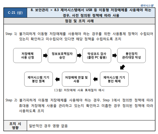8.3 제어시스템에서 USB 등 이동형 저장매체를 사용해야 하는 경우, 사전 정의된 정책에 따른 사용