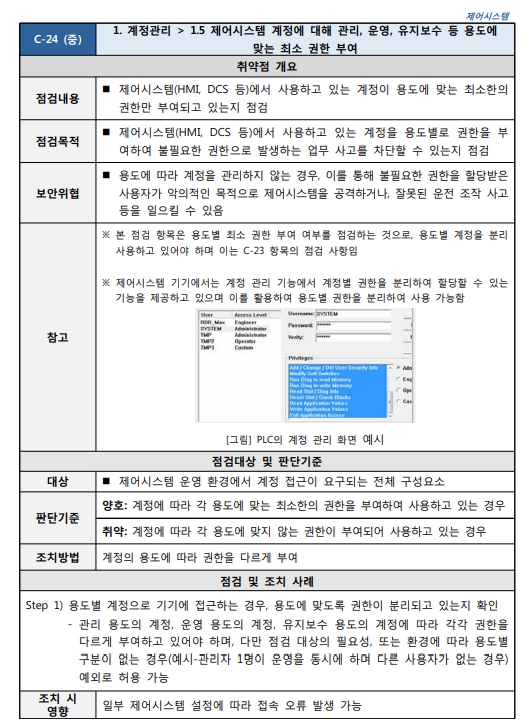 1.5 제어시스템 계정에 대해 관리, 운용, 유지보수 등 용도에 맞는 최소 권한 부여