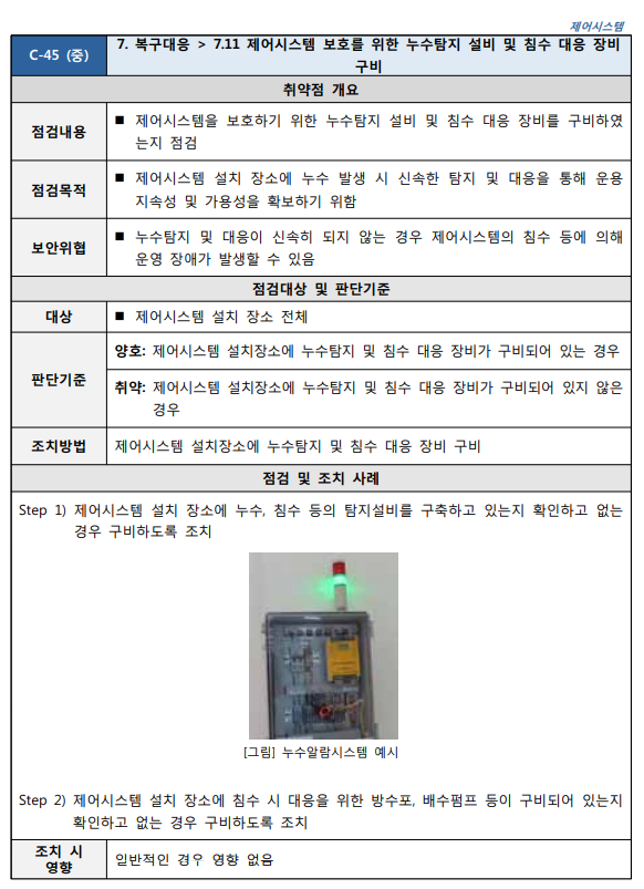 7.11 제어시스템 보호를 위한 누수탐지 설비 및 침수 대응 장비 구비