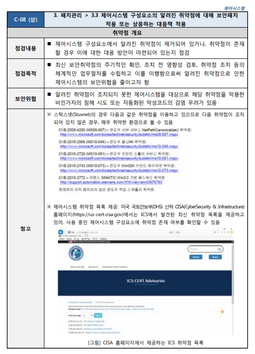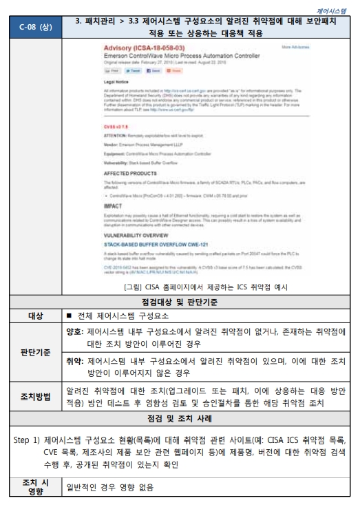 3.3 제어시스템 구성요서의 알려진 취약점에 대해 보안패치 적용 또는 상응하는 대응책 적용