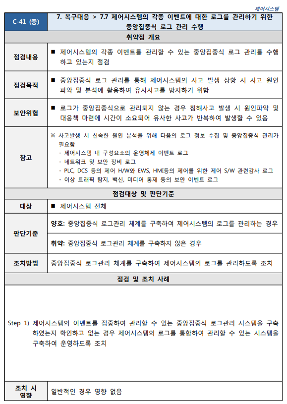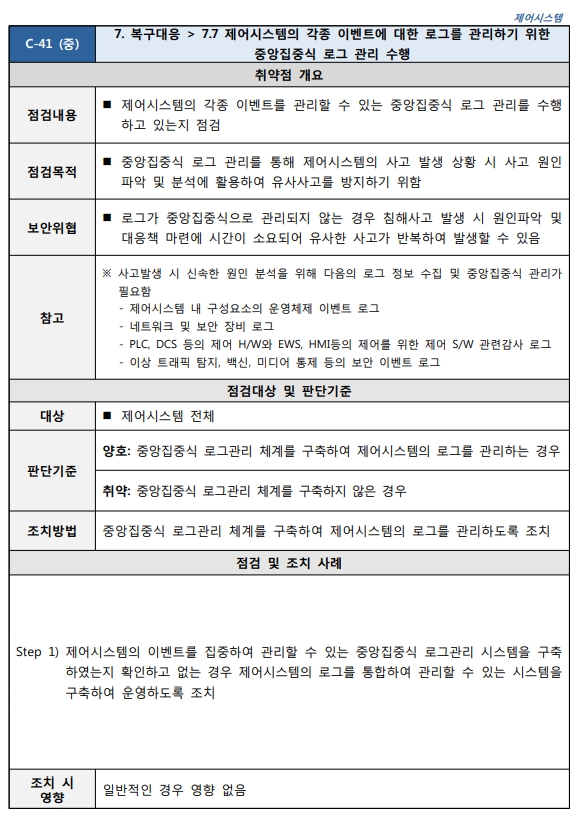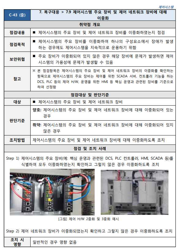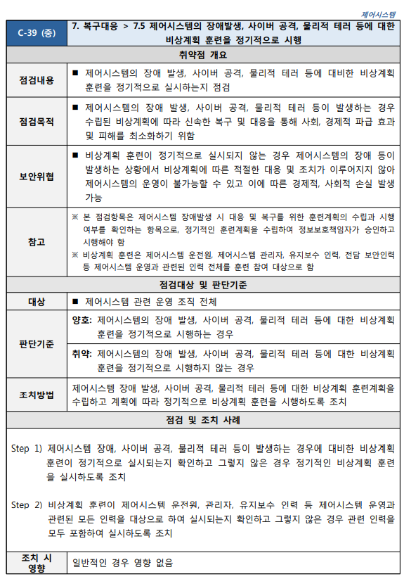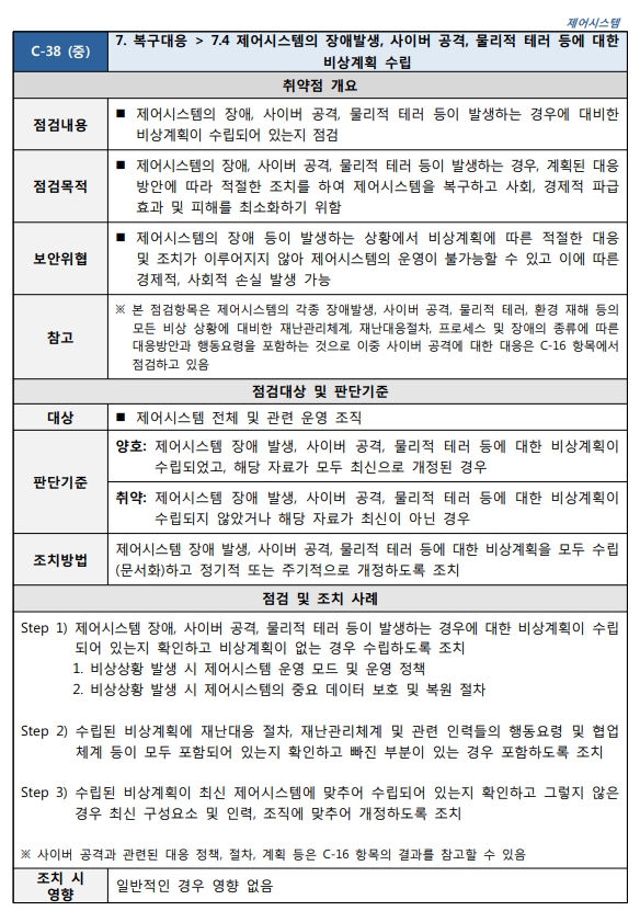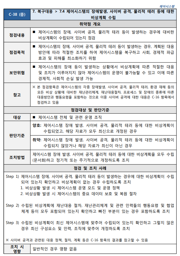7.4 제어시스템의 장애발생, 사이버 공격, 물리적 테러 등에 대한 비상계획 수립