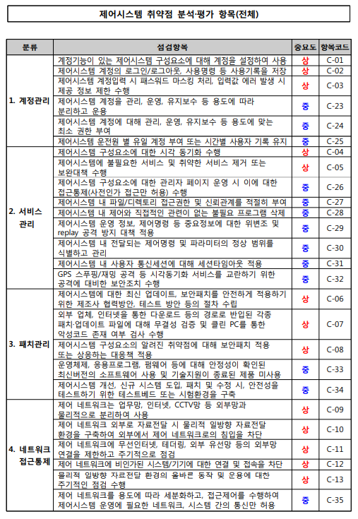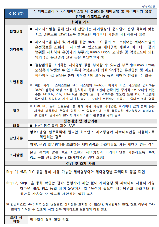 2.7 제어시스템 내 전달되는 제어명령 및 파라미터의 정상 범위를 식별하고 관리