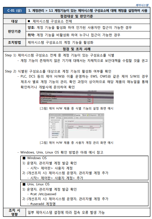 1.1 계정기능이 있는 제어시스템 구성요소에 대해 계정을 설정하여 사용