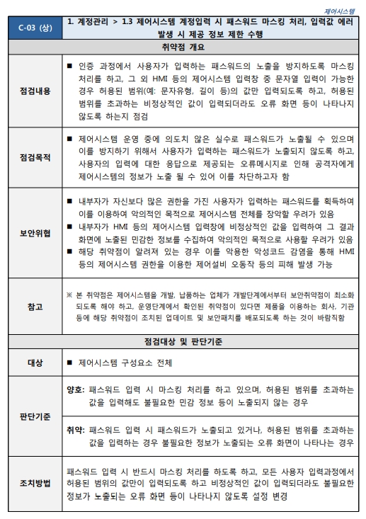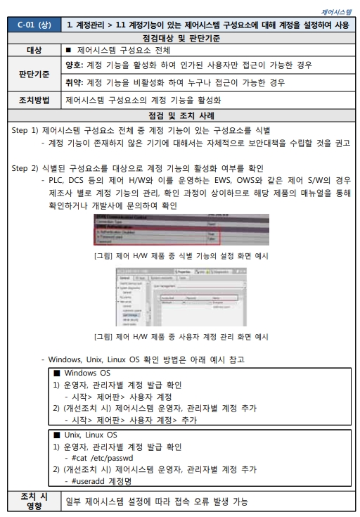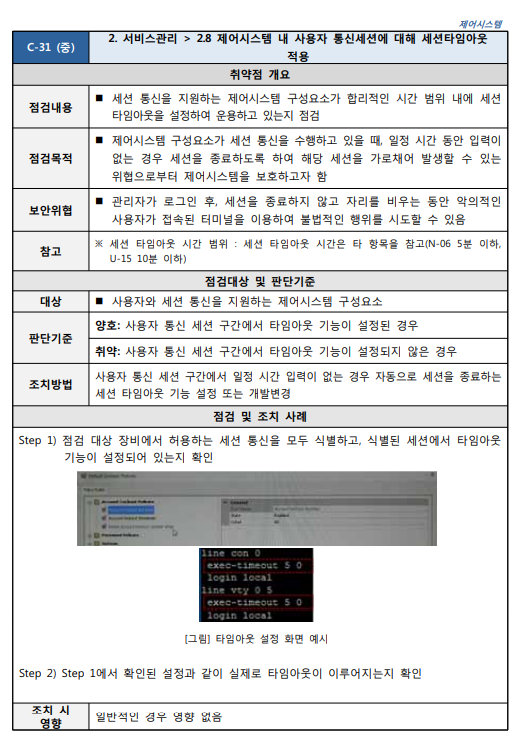 출처 : [2021.03] 과학기술정보통신부, 한국인터넷진흥원 발간 내용 "주요정보통신기반시설 기술적 취약점 분석ㆍ평가 방법 상세가이드"