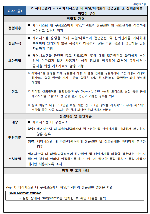 2.4 제어시스템 내 파일/디렉토리 접근권한 및 신뢰관계를 적절히 부여