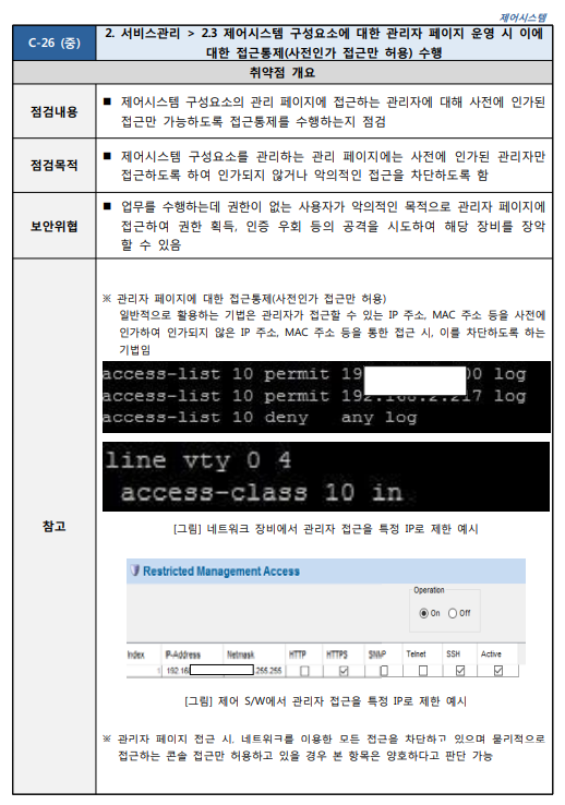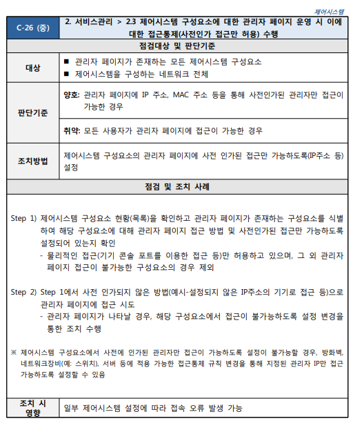 2.3 제어시스템 구성요소에 대한 관리자 페이지 운영 시 이에 대한 접근통제(사전인가 접근만 허용) 수행