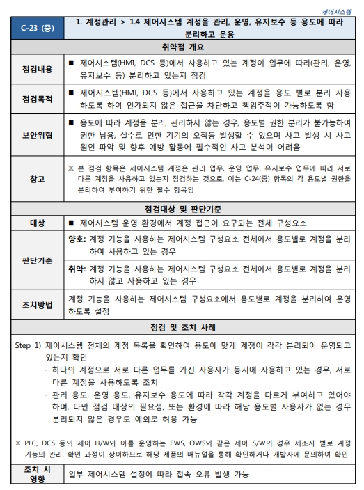 1.4 제어시스템 계정을 관리, 운영, 유지보수 등 용도에 따라 분리하고 운용