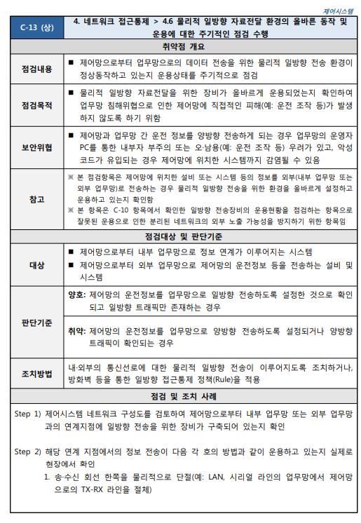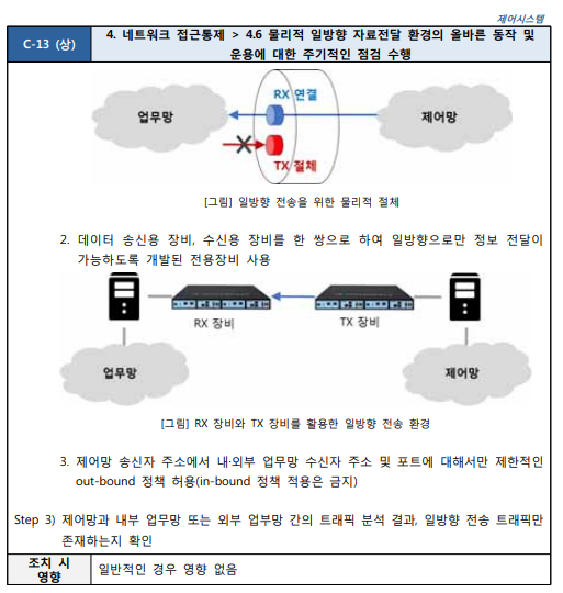 4.6 물리적 일방향 자료전달 환경의 올바른 동작 및 운용에 대한 주기적인 점검 수행