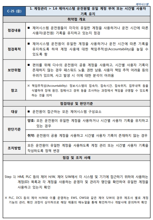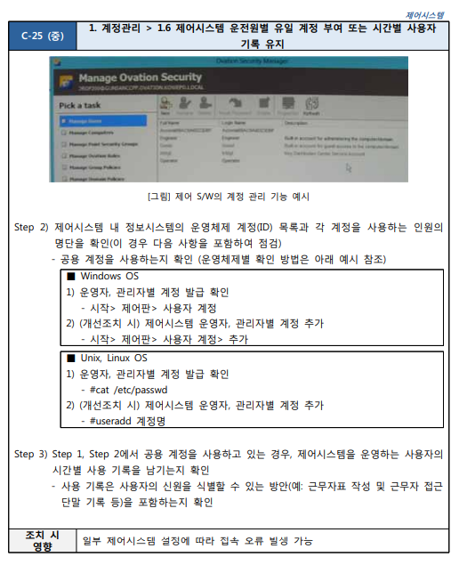 1.6 제어시스템 운전원별 유일 계정 부여 또는 시간별 사용자 기록 유지