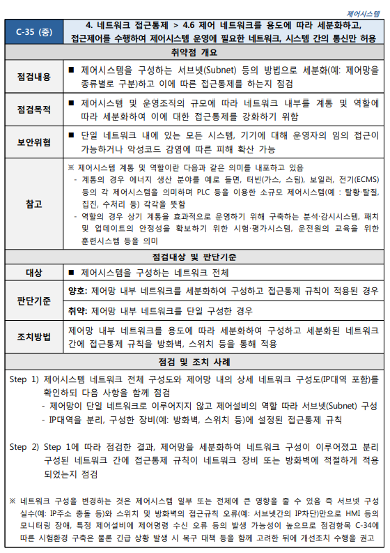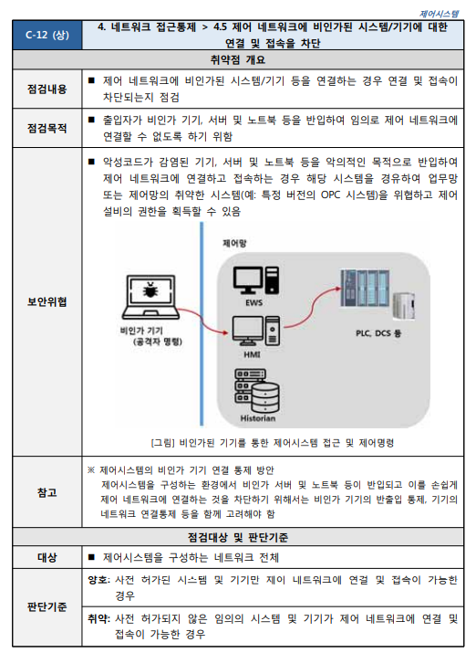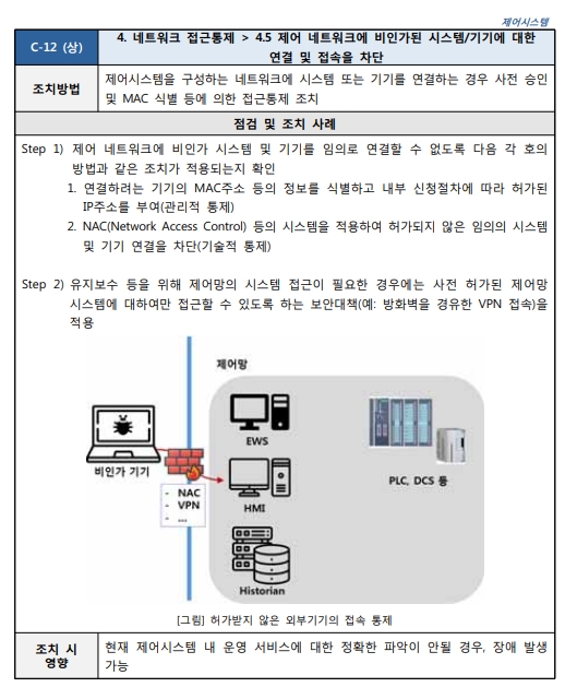 4.5 제어 네트워크에 비인가된 시스템/기기에 대한 연결 및 접속을 차단