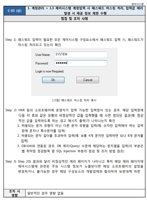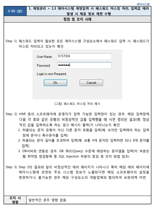 1.3 제어시스템 계정입력 시 패스워드 마스킹 처리, 입력값 에러 발생 시 제공 정보 제한 수행