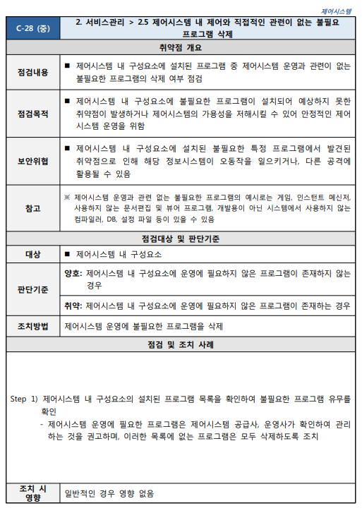 2.5 제어시스템 내 제어와 직접적인 관련이 없는 불필요 프로그램 삭제