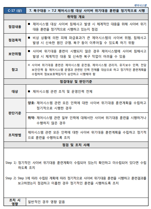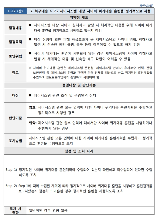 7.2 제어시스템 대상 사이버 위기대응 훈련을 정기적으로 시행