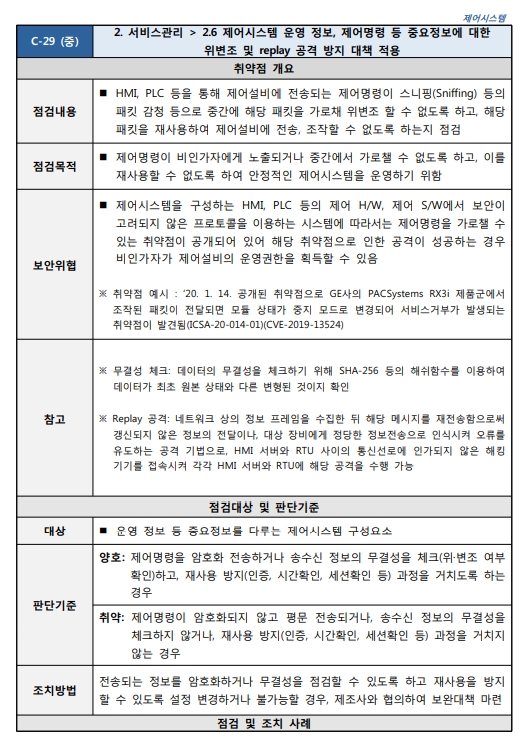 2.6 제어시스템 운영 정보, 제어명령 등 중요정보에 대한 위변조 및 replay 공격 방지 대책 적용