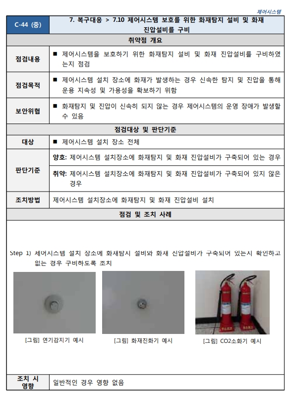 7.10 제어시스템 보호를 위한 화재탐지 설비 및 화재 진압설비를 구비