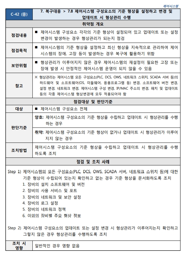 7.8 제어시스템 구성요소의 기준 형상을 설정하고 변경 및 업데이트 시 형상관리 수행