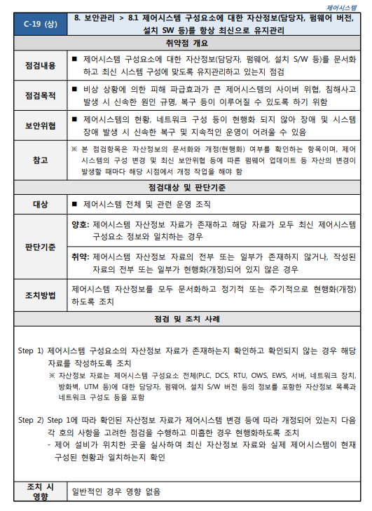8.1 제어시스템 구성요소에 대한 자산정보(담당자, 펌웨어 버전, 설치 SW 등)를 항상 최신으로 유지관리