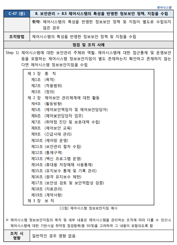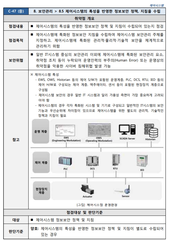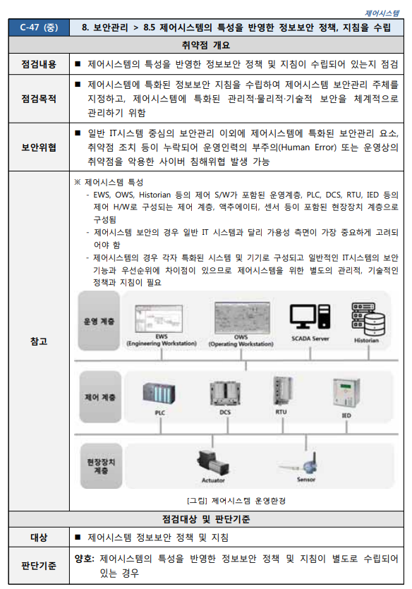 8.5 제어시스템의 특성을 반영한 정보보안 정책, 지침을 수립