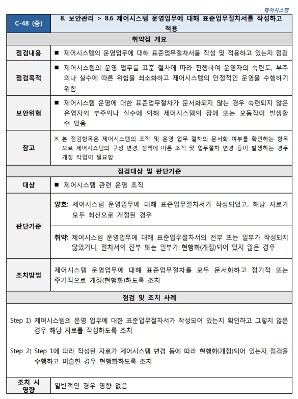 8.6 제어시스템 운영업무에 대해 표준업무절차서를 작성하고 적용