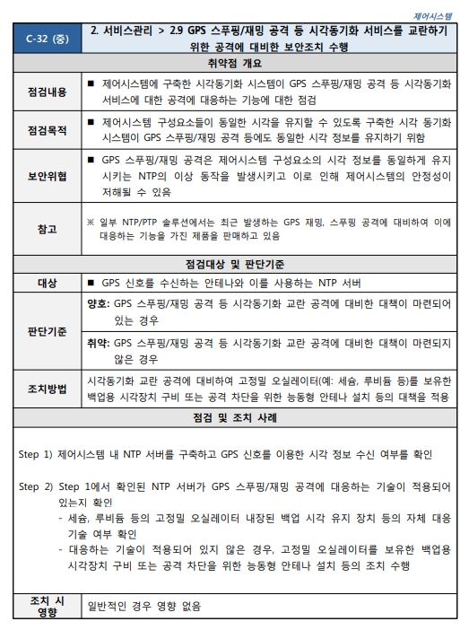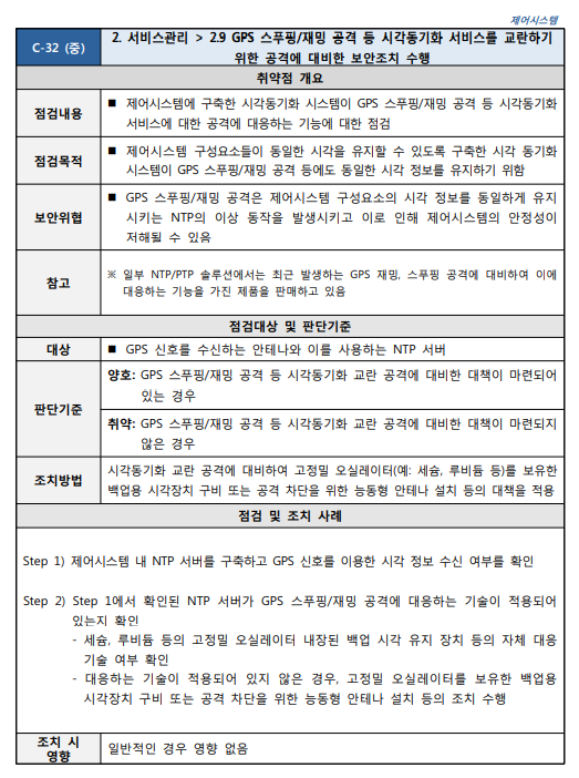 2.9 GPS 스푸핑/재밍 공격 등 시각동기화 서비스를 교란하기 위한 공격에 대비한 보안조치 수행