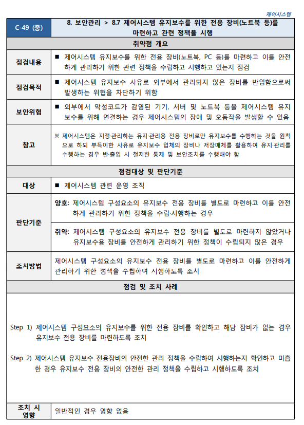 8.7 제어시스템 유지보수를 위한 전용 장비(노트북 등)를 마련하고 관련 정책을 시행