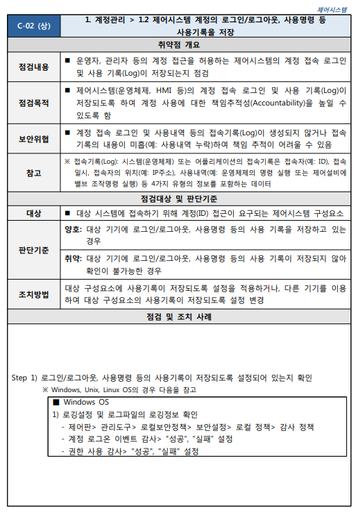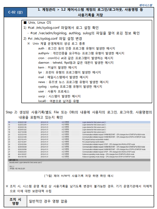 1.2 제어시스템 계정의 로그인/로그아웃, 사용명령 등 사용기록을 저장