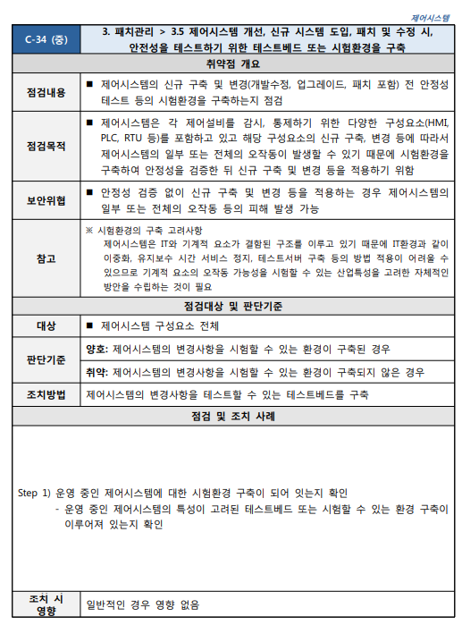 3.5 제어시스템 개선, 신규 시스템 도입, 패치 및 수정 시, 안전성을 테스트하기 위한 테스트베드 또는 시험환경을 구축