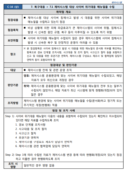 7.1 제어시스템 대상 사이버 위기대응 메뉴얼을 수립