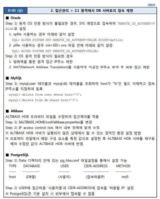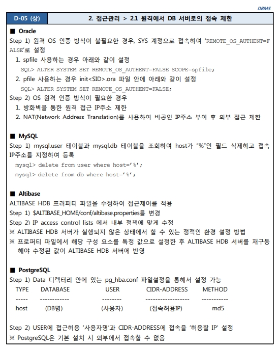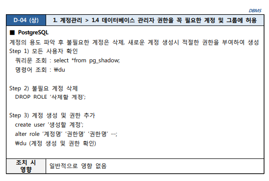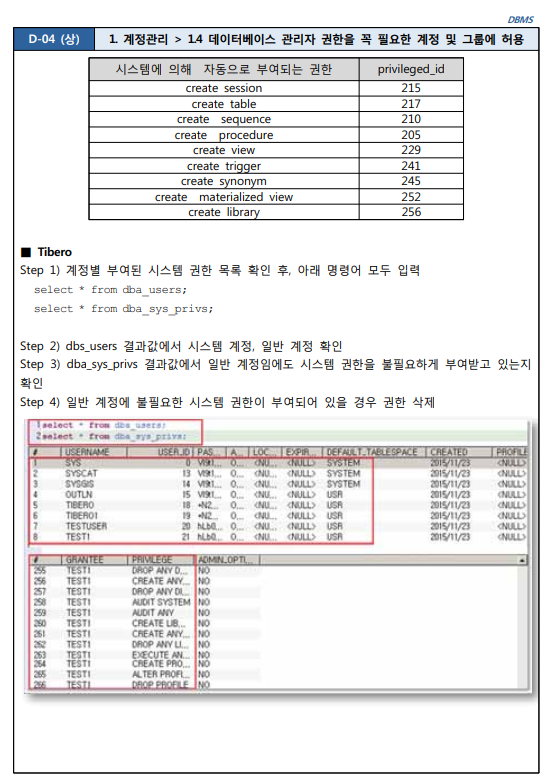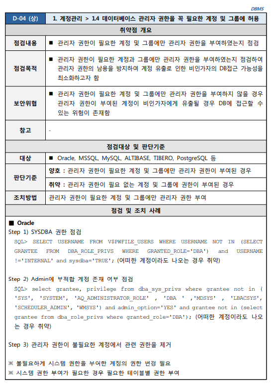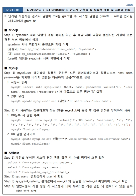 1.4 데이터베이스 관리자 권한을 꼭 필요한 계정 및 그룹에 허용