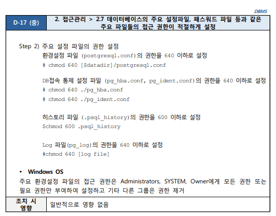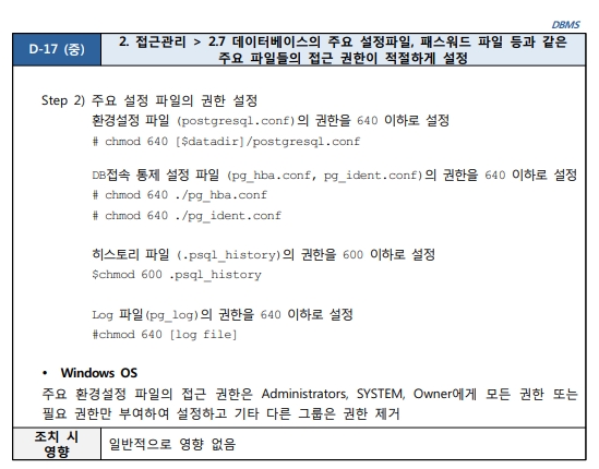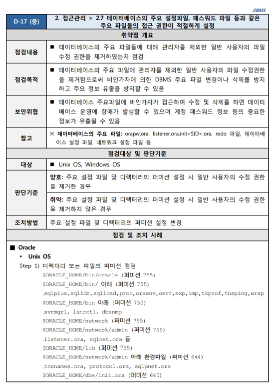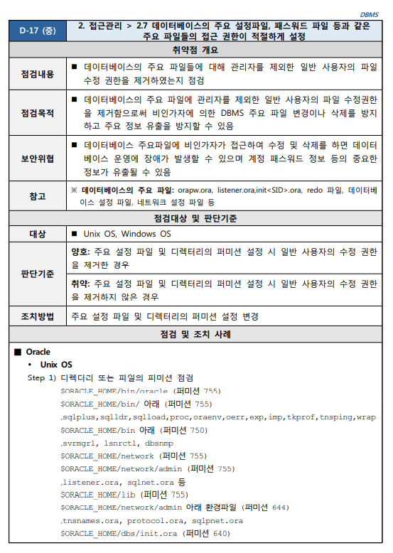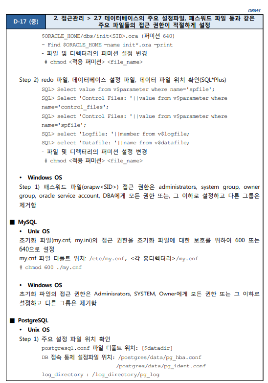 2.7. 데이터베이스의 주요 설정파일, 패스워드 파일 등과 같은 주요 파일들의 접근 권한이 적절하게 설정